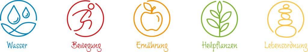 Wasser · Bewegung · Ernährung · Heilpflanzen · Lebensordnung.